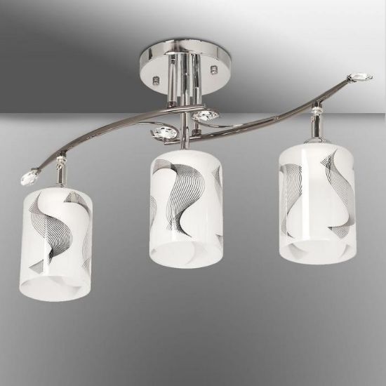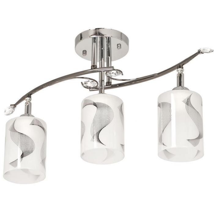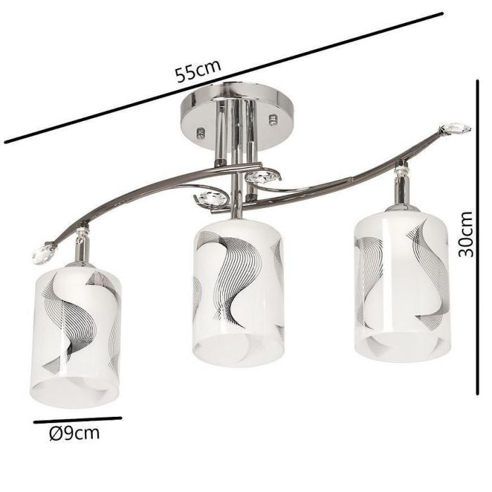Klasyczna, o prostej budowie Lampa o chromowanym wykończeniu. Lampa posiada 3 punkty światła, zamknięte w szklanym, wzorzystym kloszu. Ciekawa kompozycja dodatkowo sprawia, że lampa będzie ciekawym elementem wykończeniowym w pomieszczeniu, robiąc wrażenie nawet w dzień. Po zmierzchu natomiast odpowiednio doświetli każde pomieszczenie. Sprawdzi się w kuchni, jadalni, salonie czy przedpokoju. Do lampy nalezy dokupić żarówki.