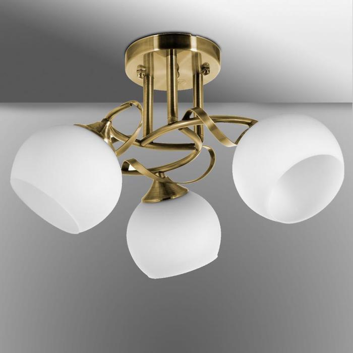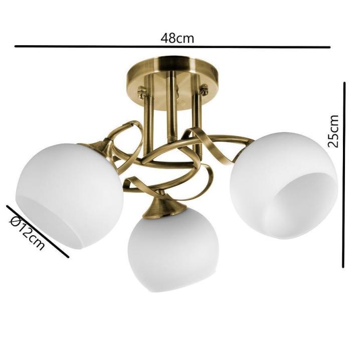 Lampa sufitowa wykonana z metalu w kolorze złota oraz szklane klosze.