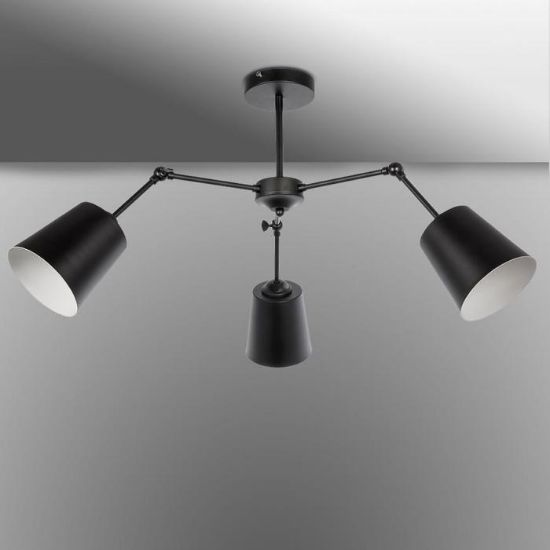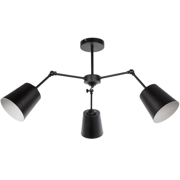 Lampa sufitowa wykonana z metalu w kolorze czarnym oraz szklane klosze. Szerokość lampy 50-86 cm.