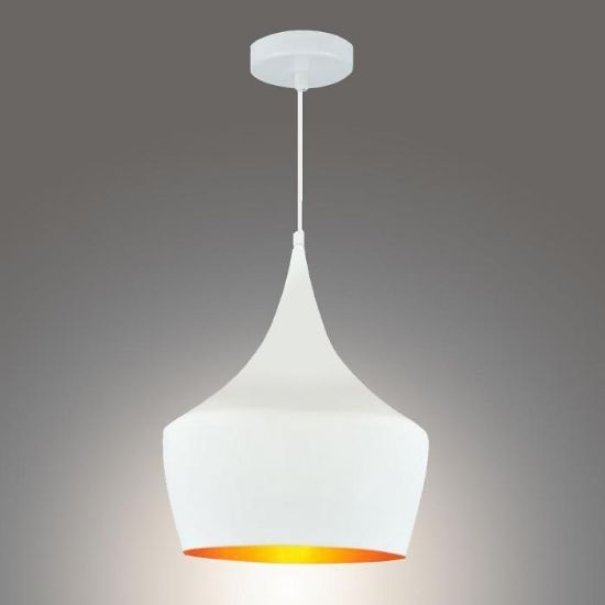 Lampa wisząca wykonana z metalu w kolorze białym.