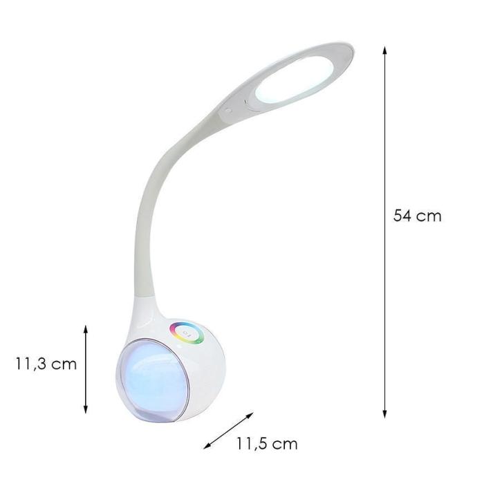 Głowicę lampki można wyginać co ułatwia ustawienie kąta padania światła. Posiada dotykowy włącznik oraz regulację jasności (trzy poziomy natężenia).