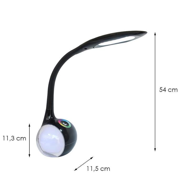 Głowicę lampki można wyginać co ułatwia ustawienie kąta padania światła. Posiada dotykowy włącznik oraz regulację jasności (trzy poziomy natężenia).