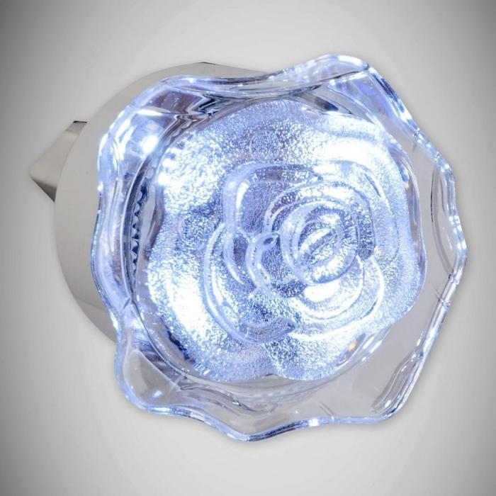 Lampka Kwiat HL993L wyposażona jest w 4 punkty świetlne LED, generujące całkowity strumień świetlny 9,2 lm przy maksymalnej mocy 0,4 W. Energooszczędne źródło światła klasy A+ zapewnia zimne, delikatne światło, które nie męczy wzroku i idealnie sprawdza się do nocnego oświetlenia.