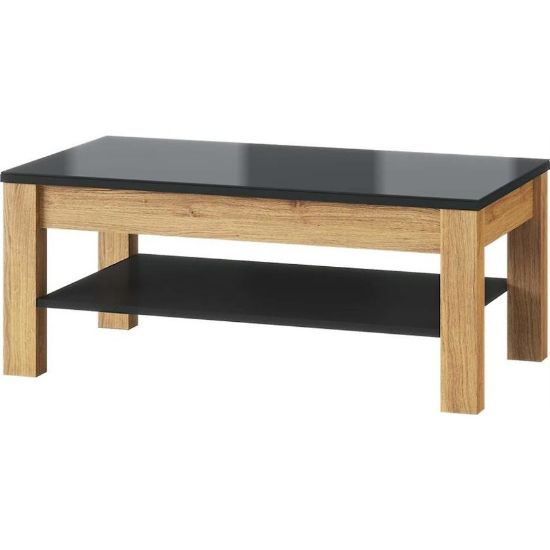 Ława 41 Kama dąb Camargue/czarny połysk to elegancki i praktyczny mebel, który wprowadza do salonu nowoczesny styl. Prostokątny blat, połyskujące wykończenie i solidna konstrukcja sprawiają, że stolik sprawdzi się w codziennym użytkowaniu i stanie się stylowym elementem aranżacji.