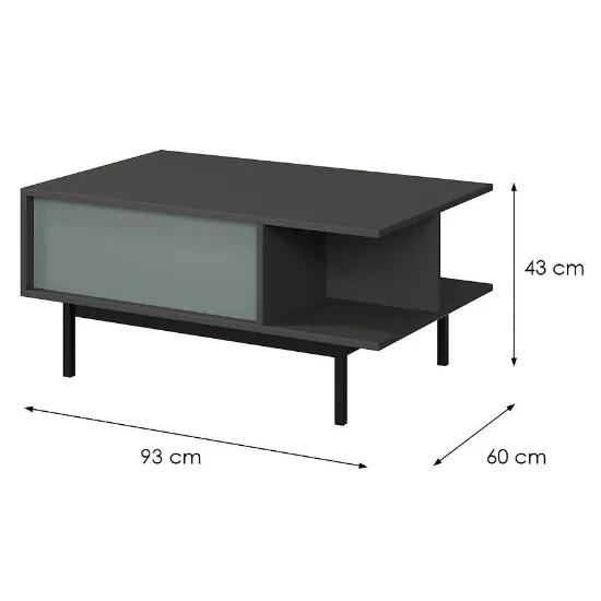 Ława Alsy 12 w kolorze aloes/antracyt to oryginalne zestawienie barw, które wnosi świeżość i nowoczesność do wnętrza. Idealna do salonów w stylu industrialnym lub modern, łączy praktyczność z niebanalnym designem.