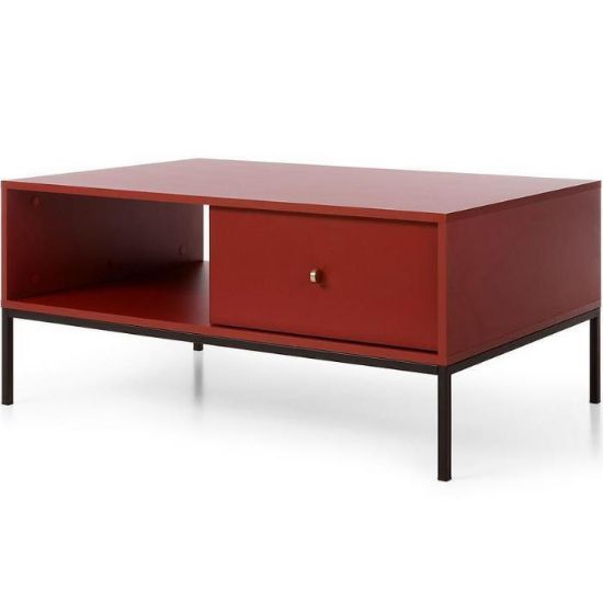 Kolekcja komód Mono to meble utrzymane w stylu loftowym, ultra nowoczesne, które świetnie sprawdzą się w nowoczesnych, industrialnych wnętrzach. Mocne, ale jednocześnie stłumione kolory w połączeniu z zachowanym minimalizmem to świente rozwiązanie do wnętrz, w których chcemy zachować spójność wystroju, ale także podkreślić jego oryginalny charakter. Dzięki temu, że konstrukcja jest umieszczona na wysokich nóżkach umożliwia nam odkurzenie czy umycie podłogi pod meblami. Ława posiada jedną wysuwaną szufladę w której można umieścić najpotrzebniejsze rzeczy oraz jedną półkę.
