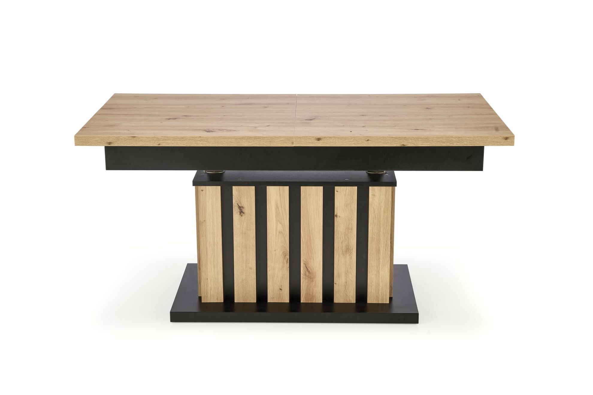 Ława Antoni w kolorze dąb artisan/czarny została wykonana z płyty meblowej okleinowej, Dodatkowym atutem jest mozliwość rozłożenia ławy. Jej wymiary wynoszą szerokość 130-170 cm, głębokość 60 cm i wysokość 65-82 cm.