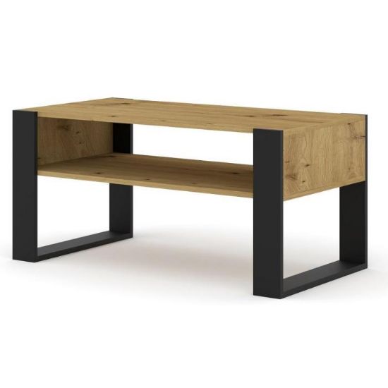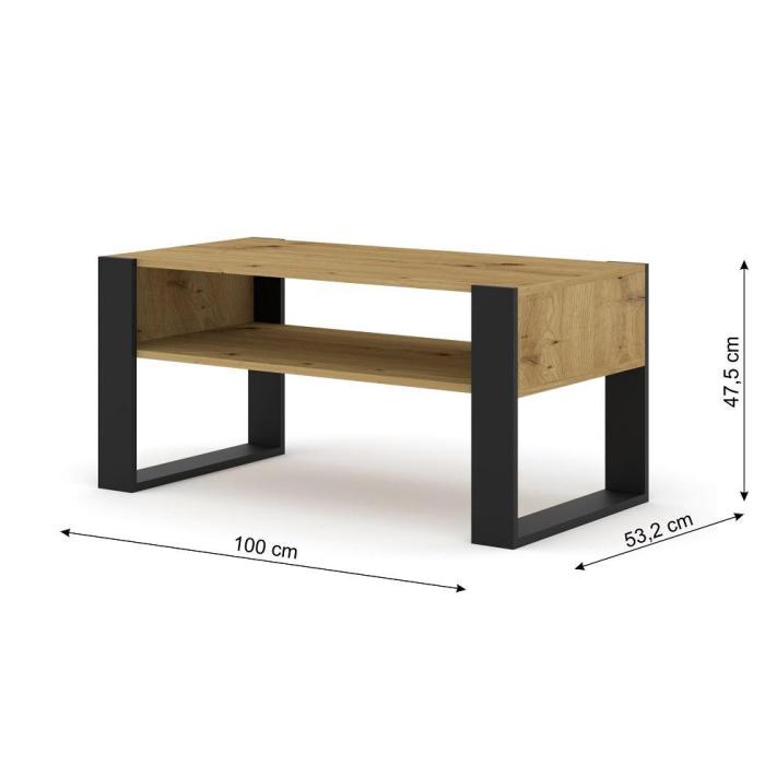 Ława z kolekcji Apex została wykonana z płyty laminowanej 16mm oraz płyty HDF, natomiast obrzeża zostały wykonane z płyty ABS. Ława, oprócz charakterystycznych, czarnych nóg, które gwarantują stabliność, posiada praktyczną półkę pod blatem, która zapewni dodatkowe miejsce do przechowywania.