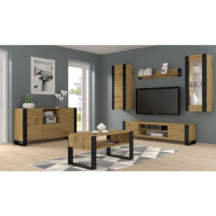 Kolekcja Apex to przede wszystkim nowoczesność i funkcjonalność w jednym. Kolekcja doskonale sprawdzi się w każdym salonie. Wygląd mebli jest nowoczesny, a zarazem uniwersalny. Całość uzupełniają czarne, charakterystyczne nogi, które gwarantują stabliność mebli. Nogi doskonale współgrają z frontami i korpusem w kolorze dąb artisan.