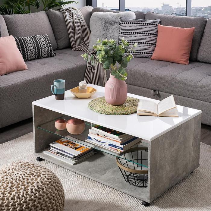 Doskonale sprawdzi się w salonie lub innym, dowolnym pomieszczeniu. Wykonana jest w całości z płyty wiórowej laminowanej.