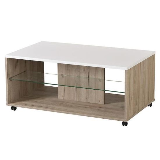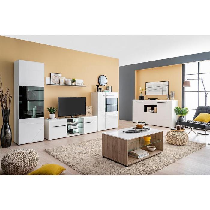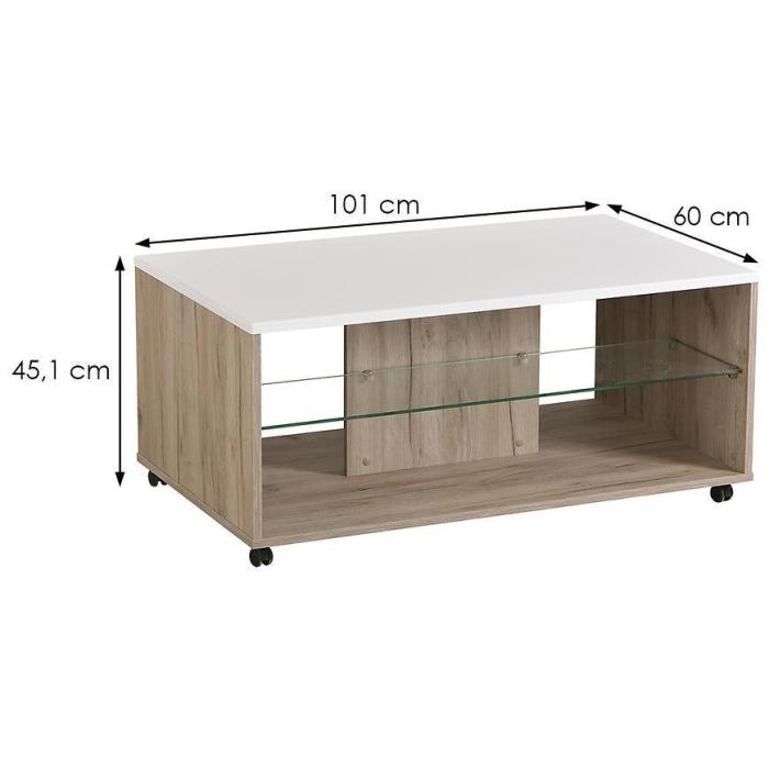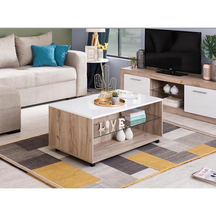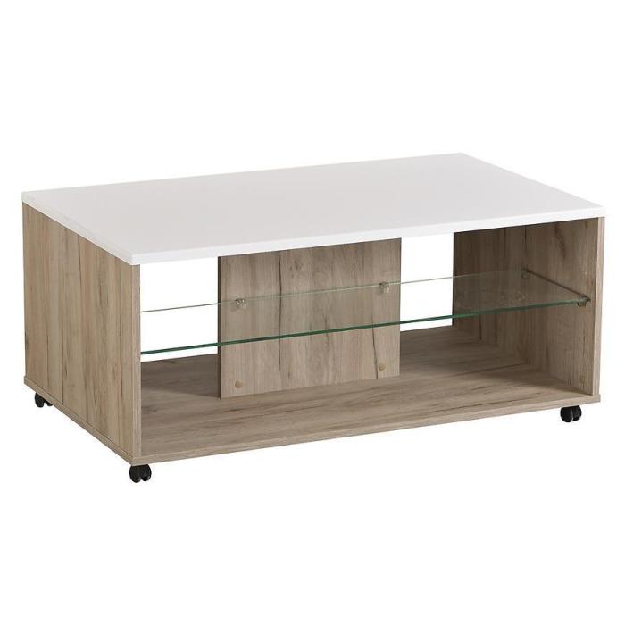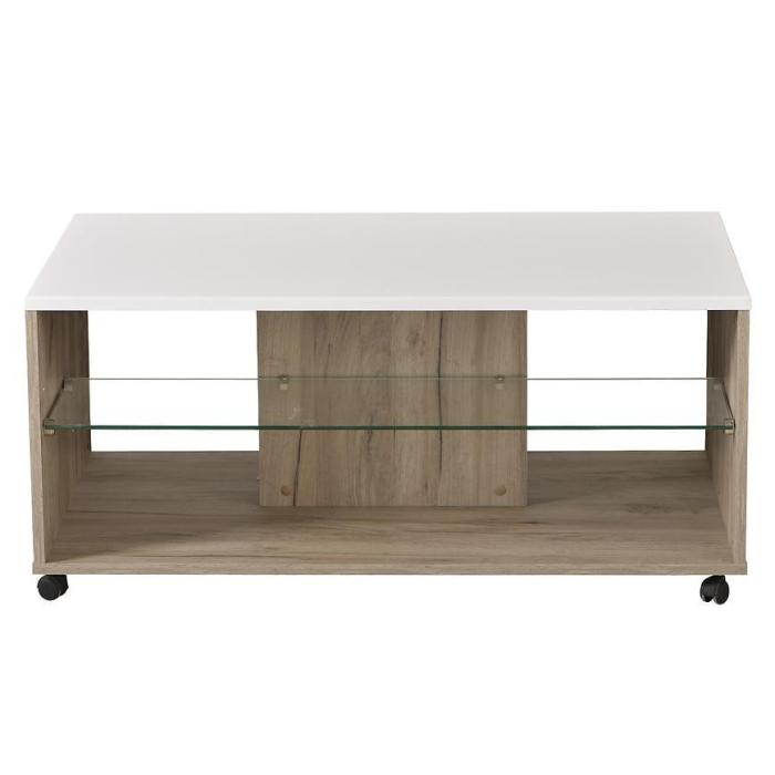 Doskonale sprawdzi się w salonie lub innym, dowolnym pomieszczeniu. Wykonana jest w całości z płyty wiórowej laminowanej.