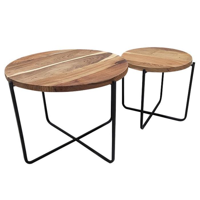 Stolik został wykonany z drewna, a stelaż wykonano z metalu.