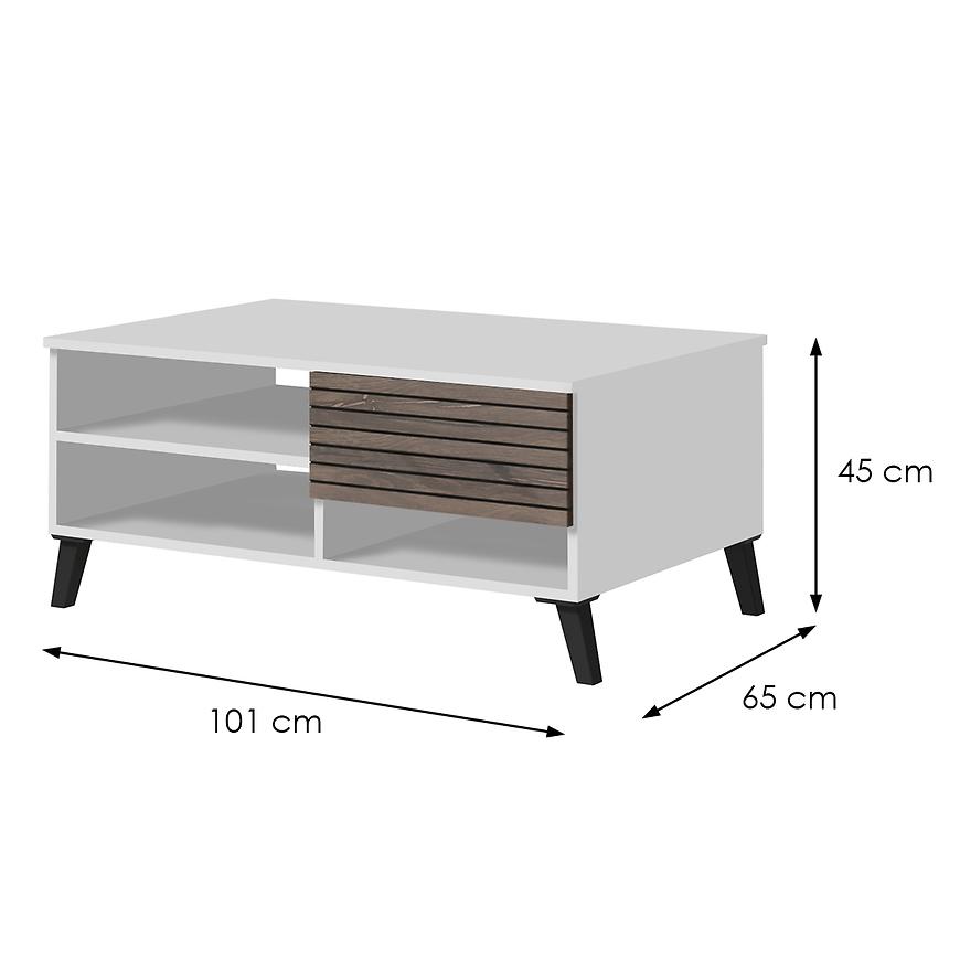 Nowoczesna ława z serii Carlo to idealna propozycja do salonu w stylu nowoczesnym industrialnym lub loftowym Kompaktowa, funkcjonalna i estetyczna ława dopełni każdą aranżację. Całość wykonana jest z wysokiej jakości materiałów płyty wiórowej laminowanej w jasnym wybarwieniu.