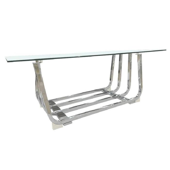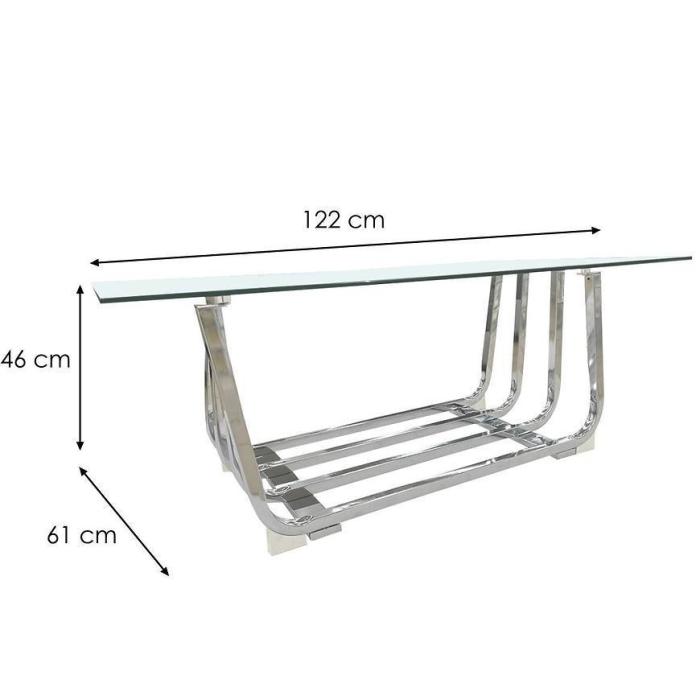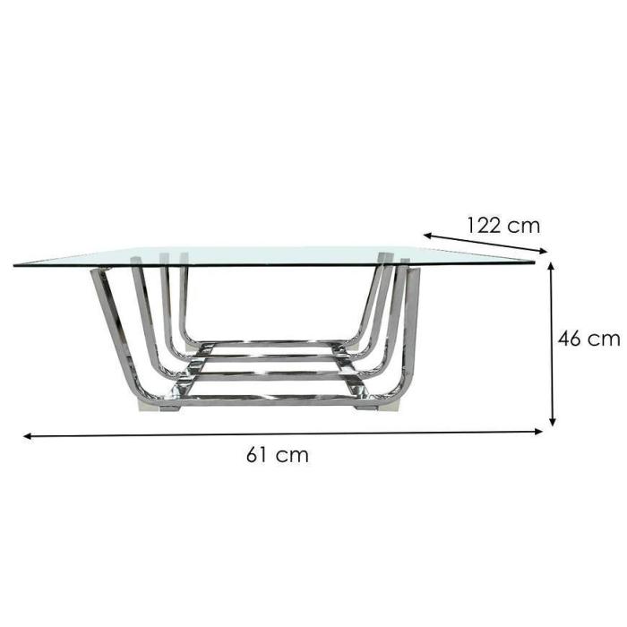 Stolik został wykonany ze szkła i metalowego stelaża.