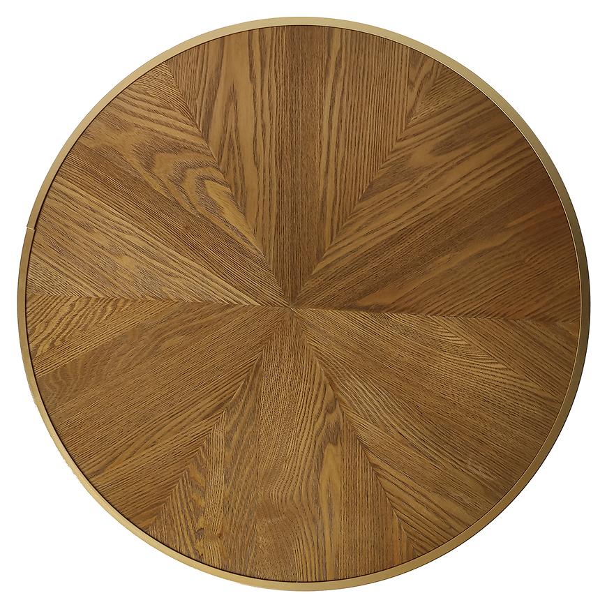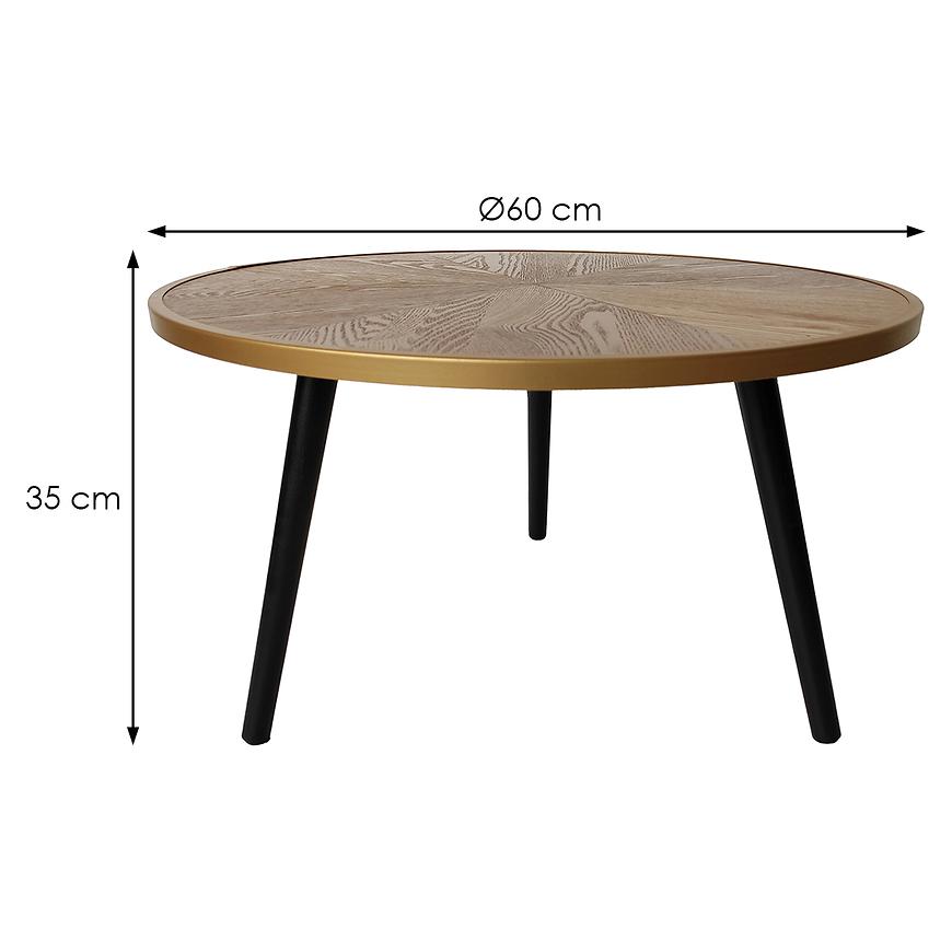 Blat ławy ma kształt okrągły, co nadaje meblowi lekkości i sprawia, że jest on idealnym rozwiązaniem do małych pomieszczeń lub jako dodatek do większego zestawu mebli.