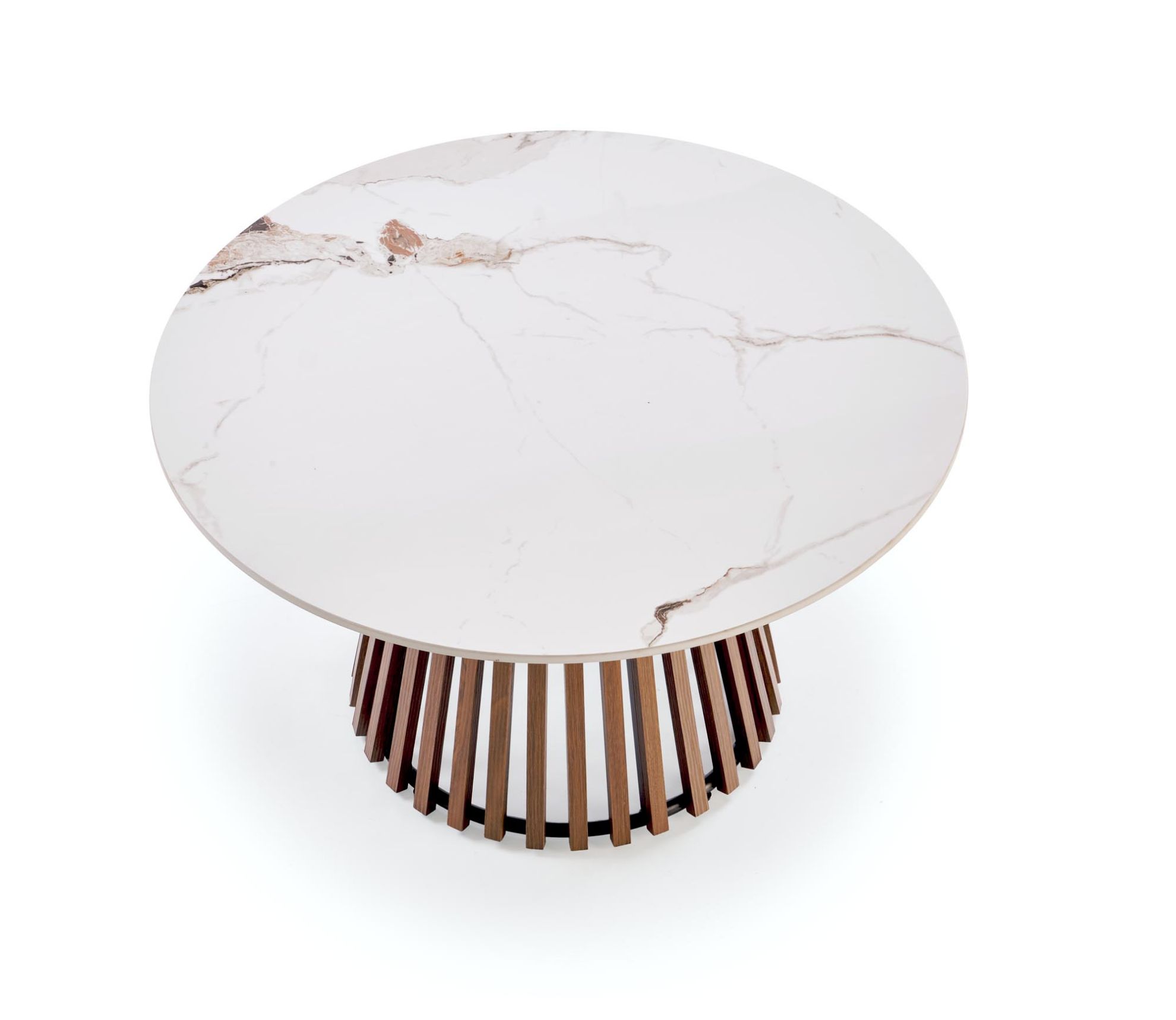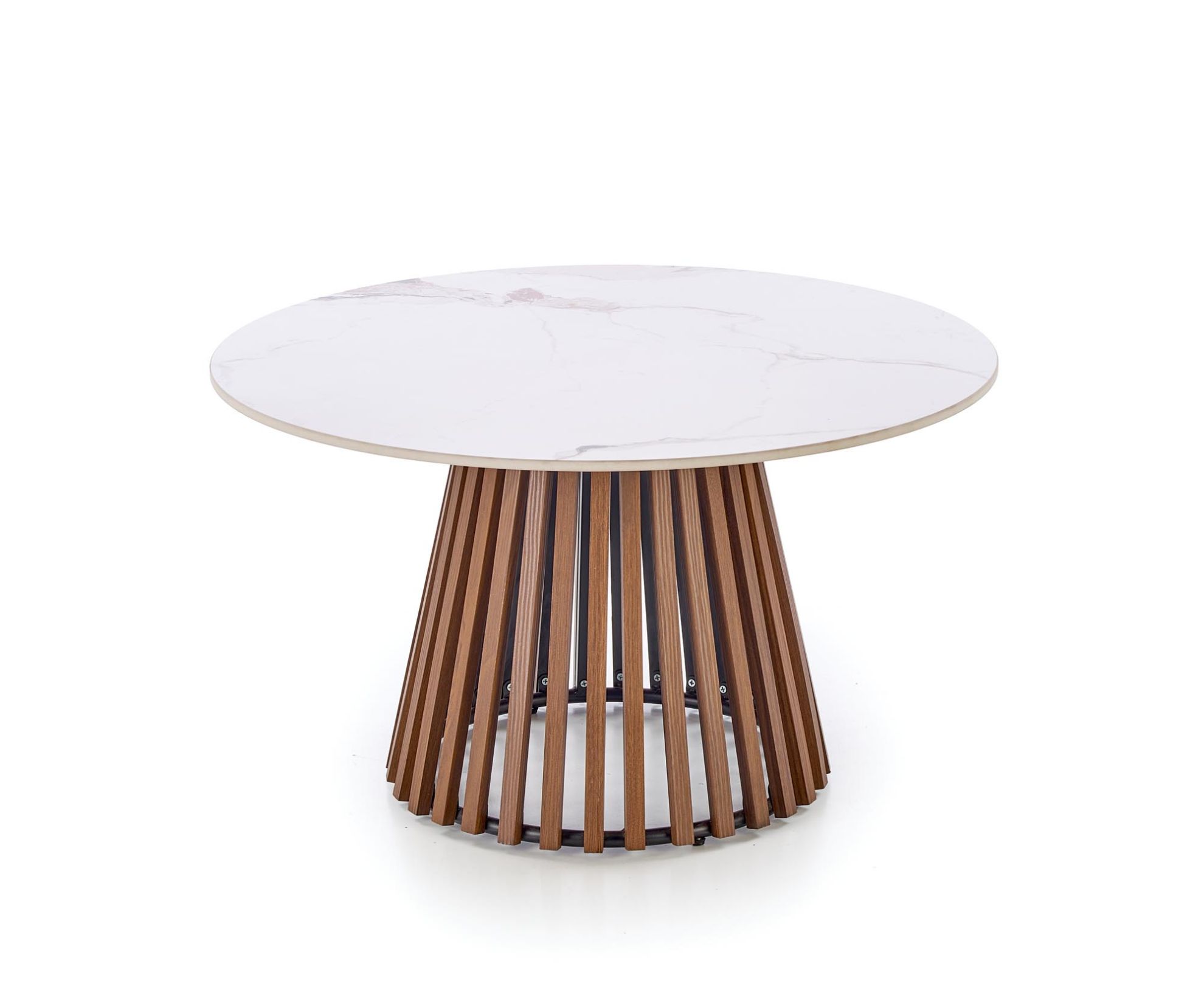 Ława Dexa beżowy marmur/orzechowy – nowoczesny stół kawowy do salonu