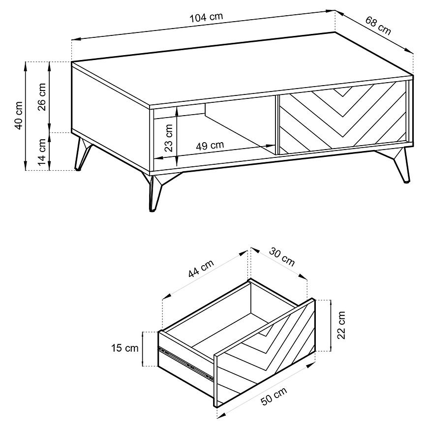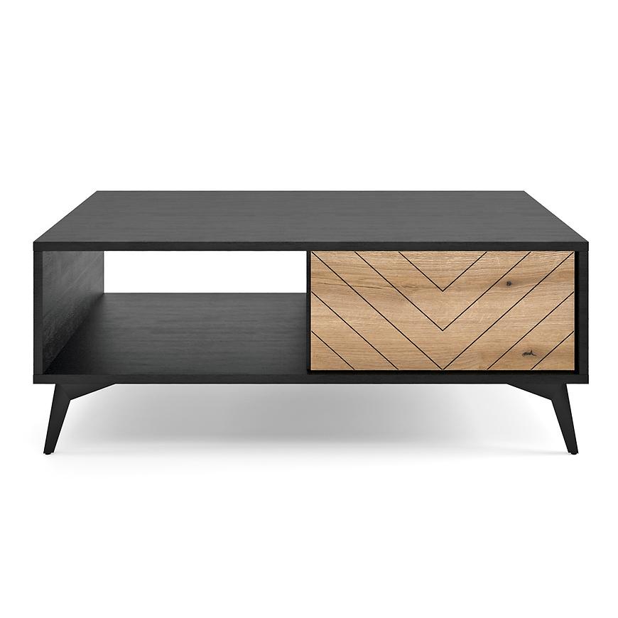 Prostokątny blat wykonany z trwałej płyty wiórowej laminowanej w dekorze dębu evoke prezentuje się elegancko i nadaje wnętrzu naturalnego uroku. Matowe wykończenie blatu dodaje mu stylu i stonowanego charakteru. Metalowy stelaż stanowi solidne i trwałe podparcie stolika, co zapewnia stabilność mebla. Dodatkowo, ława Diamond posiada praktyczną półkę umieszczoną pod blatem, która stanowi doskonałe miejsce do przechowywania książek, czasopism czy innych drobiazgów.