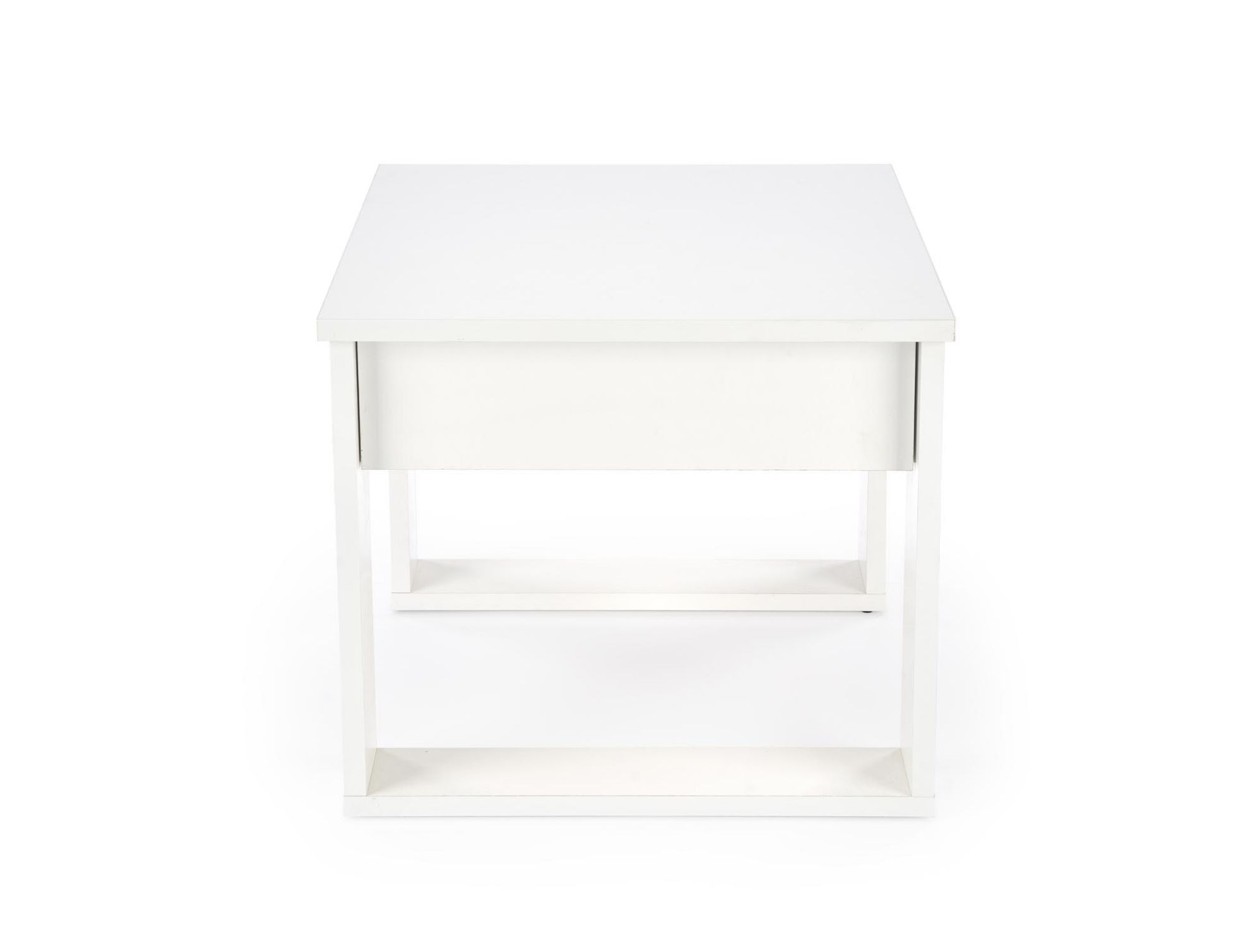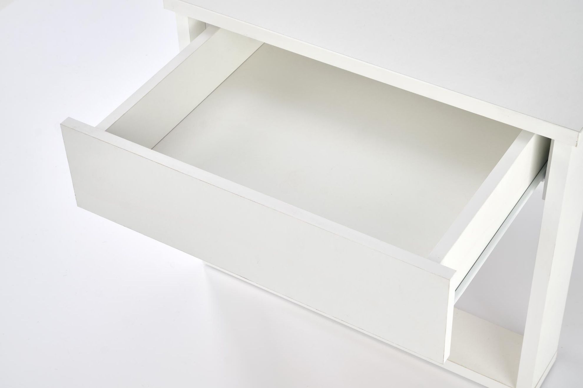 Ta ława w kolorze białym z szufladą, jest doskonałym elementem dekoracyjnym i funkcjonalnym meblem. Idealnie pasuje do nowoczesnych i klasycznych wnętrz, dodając im elegancji i stylowego wyglądu. Jest to mebel, który łączy w sobie estetykę i praktyczność, będąc jednocześnie wygodnym miejscem do przechowywania i użytkowania.
