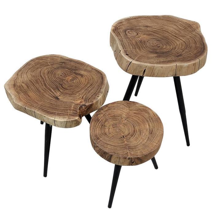 Stolik został wykonany z drewna, a stelaż wykonano z metalu.