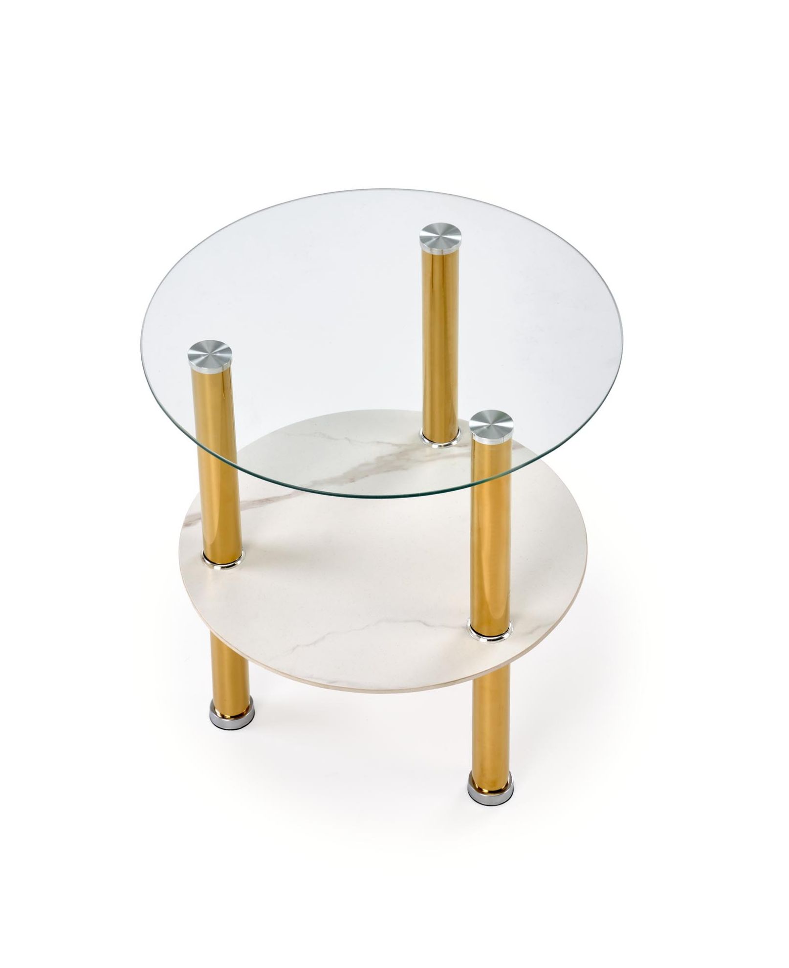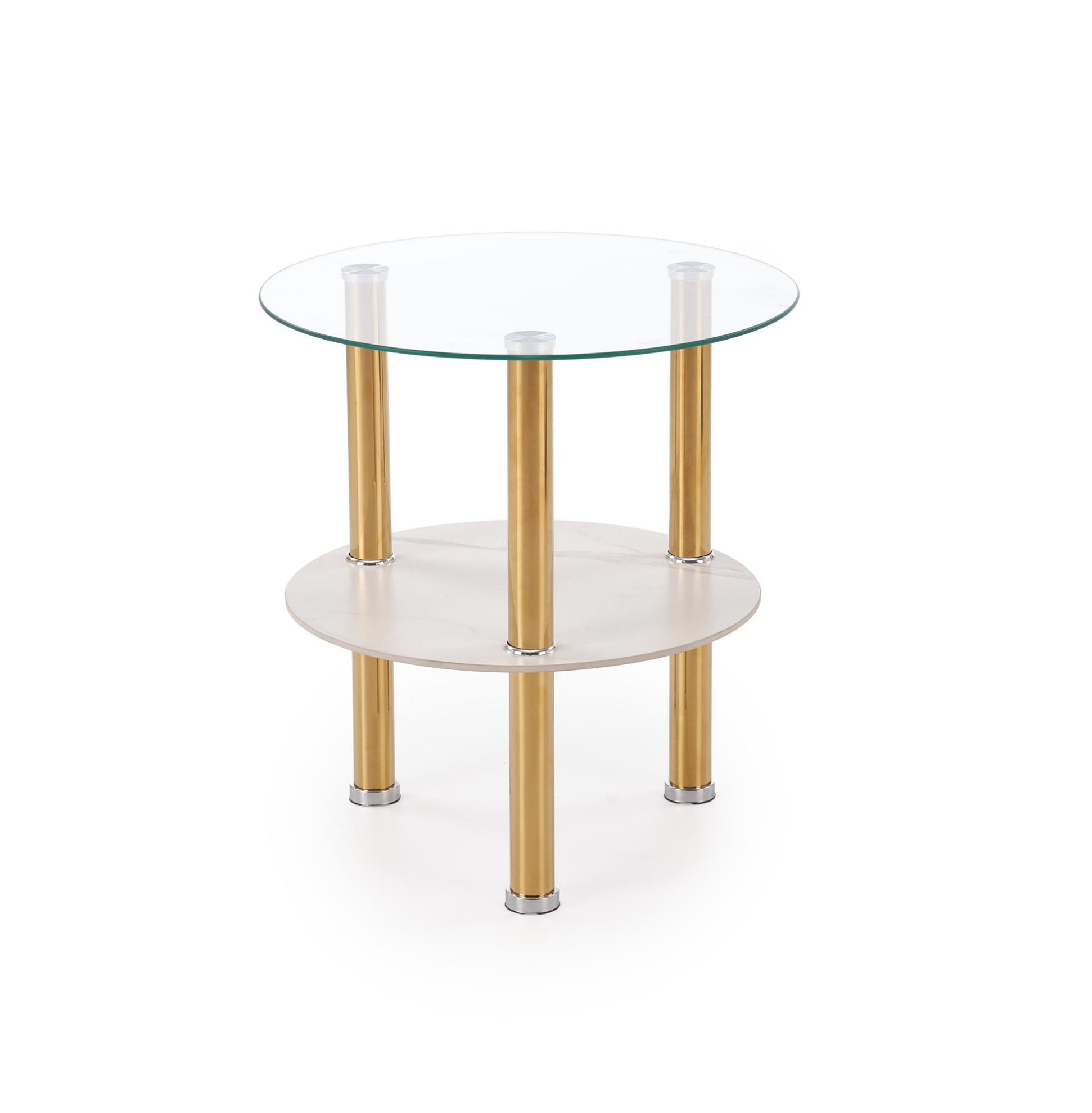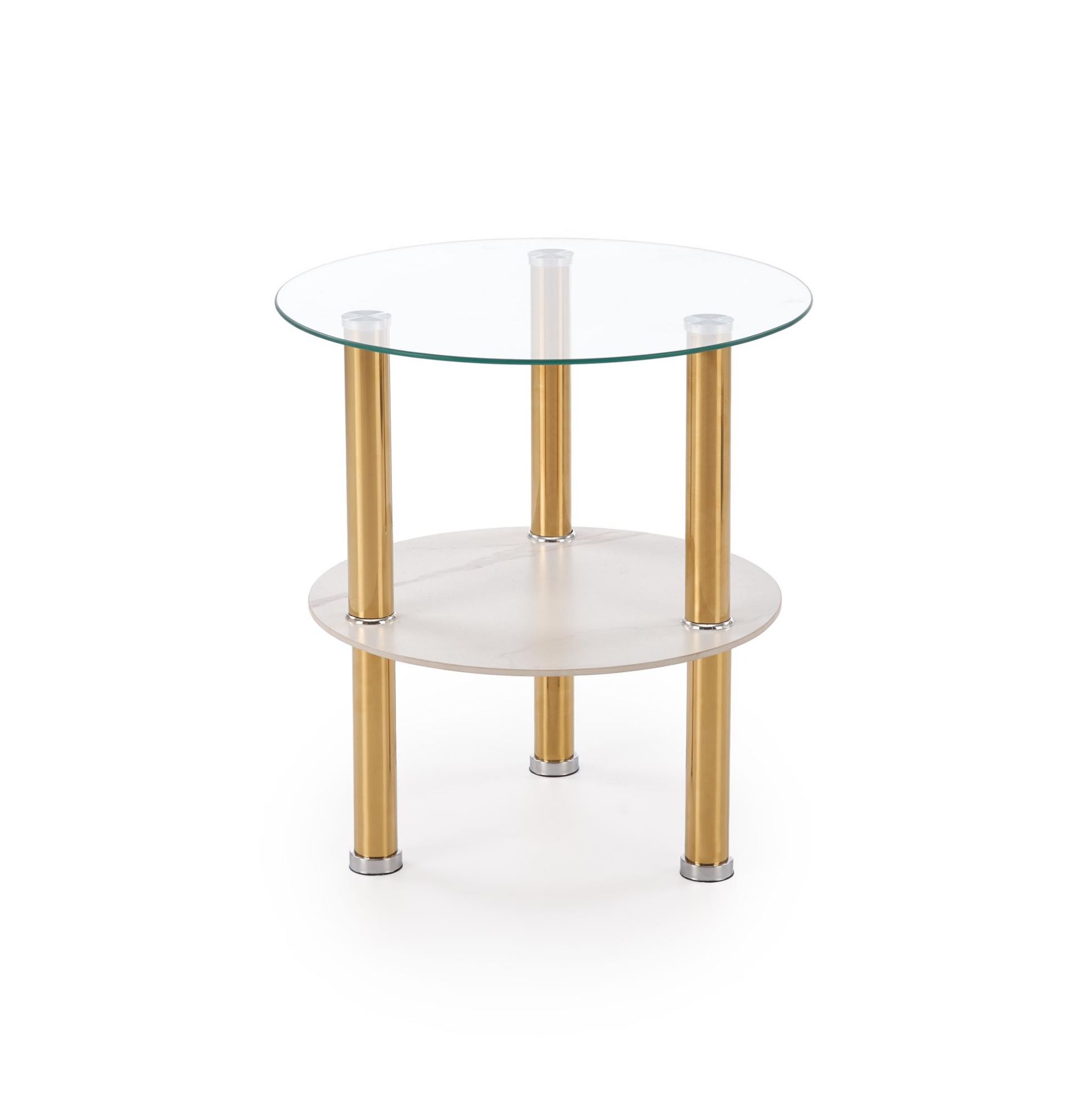 Ława Durma S to idealne połączenie nowoczesnego designu i wytrzymałych materiałów. Jej blat ze szkła w kolorze transparentnym harmonizuje z podstawą z chromowanej stali wykończonej w eleganckim odcieniu złota, tworząc subtelny efekt luksusu w każdym wnętrzu. Wymiary fi45/49 cm sprawiają, że ława doskonale sprawdzi się zarówno w przestronnych salonach, jak i w mniejszych pomieszczeniach, nie przytłaczając przestrzeni, a jednocześnie zachowując praktyczną powierzchnię użytkową.