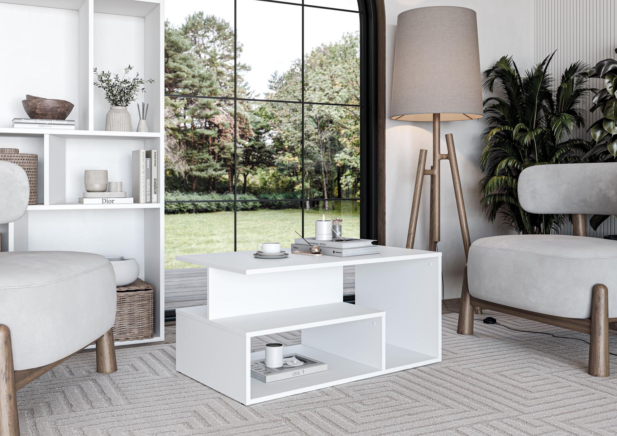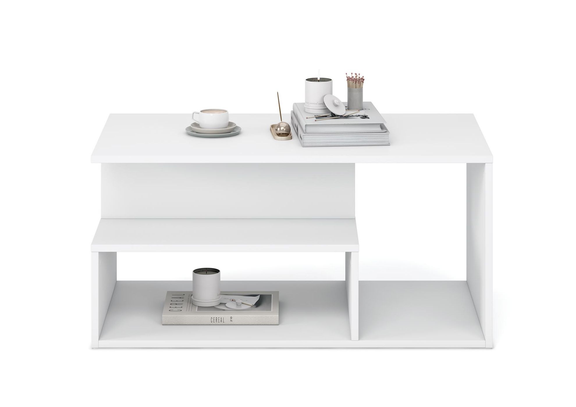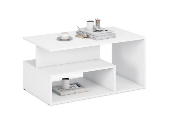 Ława do salonu Edge została wykonana z wysokiej jakości płyty meblowej laminowanej, która charakteryzuje się zwiększoną odpornością na zarysowania, wilgoć oraz codzienne użytkowanie. Powierzchnia mebla jest łatwa do utrzymania w czystości, co czyni ją praktycznym wyborem do intensywnie użytkowanych pomieszczeń. Biały stolik kawowy doskonale odbija światło, optycznie rozjaśnia wnętrze i nadaje mu lekkości.