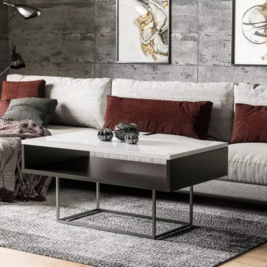 Uniwersalny, prostokątny kształt ławy pozwala na wszechstronne zastosowanie — zarówno jako stolik kawowy w salonie, jak i powierzchnię użytkową w przestrzeniach typu loft. Wysokość 53 cm sprawia, że ława idealnie komponuje się z sofami i fotelami, umożliwiając wygodne użytkowanie. Dzięki stylowi, który łączy nowoczesność z nutą industrialnego charakteru, ława Enna jest doskonałym wyborem dla osób ceniących połączenie estetyki i funkcjonalności, wzbogacając wnętrze o element dekoracyjny, który zachwyca swoją prostotą i solidnością.
