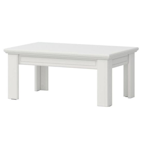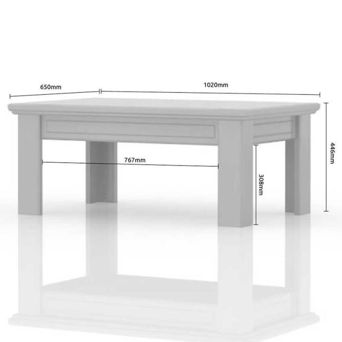 Kolekcja Evergreen w kolorze polar pine/ivory świetnie prezentuje się w klasycznych wnętrzach. Stolik doskonale sprawdzi się w każdym salonie lub innym, dowolnym pomieszczeniu. Wykonany jest z płyty MDF lakierowanej.