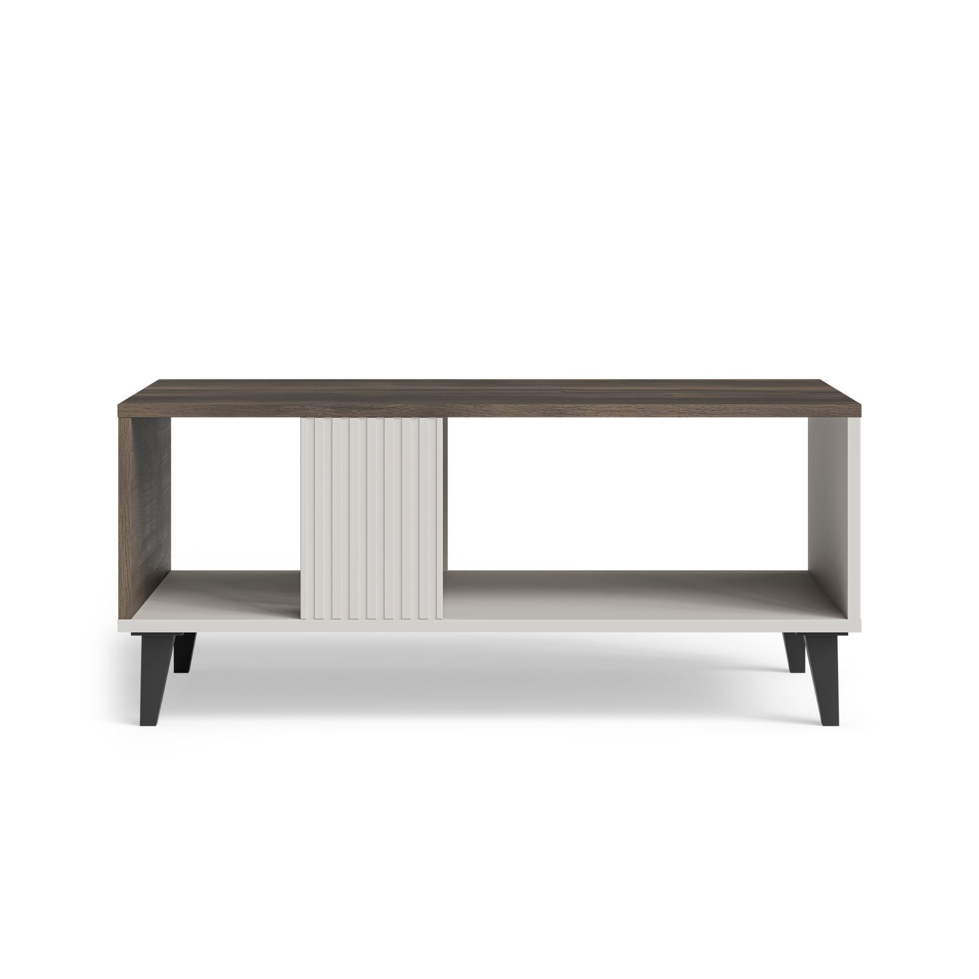 Ława Felicjan 2 została wykonana z solidnych materiałów, które gwarantują trwałość i estetyczny wygląd przez długi czas użytkowania. Konstrukcja powstała z MDF okleinowanego oraz płyty meblowej okleinowanej, co zapewnia odporność na codzienne użytkowanie oraz łatwość w utrzymaniu czystości. Elementy z polipropylenu zwiększają wytrzymałość konstrukcji, a czarne nóżki nadają całości stabilności i podkreślają nowoczesny charakter mebla. Starannie dobrane materiały sprawiają, że stolik kawowy kaszmir/orzech prezentuje się estetycznie i elegancko w każdej aranżacji wnętrza.