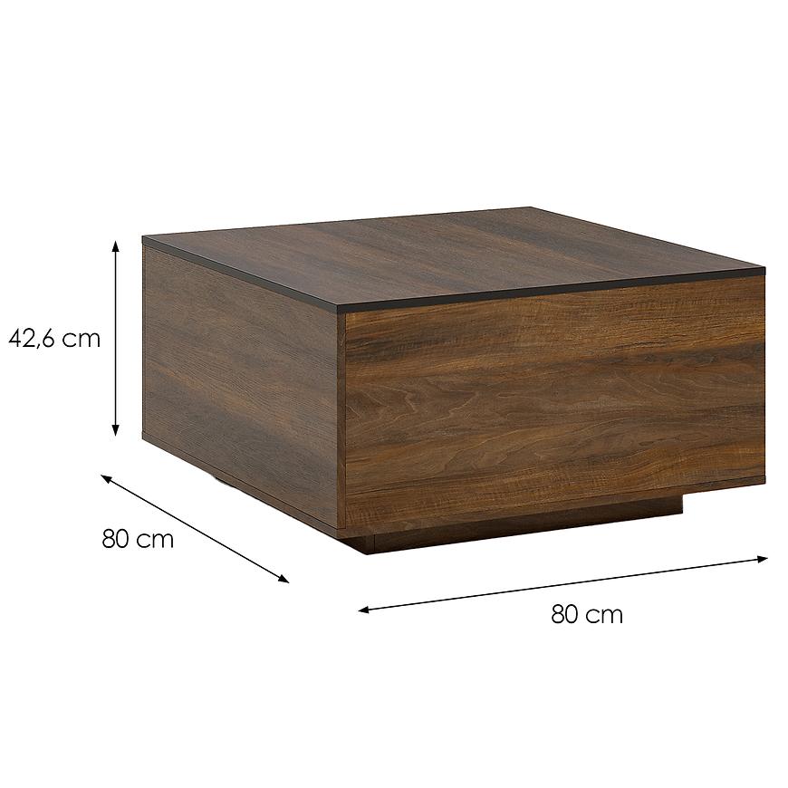 Ława ma praktyczne wymiary – szerokość 80 cm i głębokość 80 cm, co sprawia, że doskonale nadaje się zarówno do mniejszych, jak i większych salonów. Jej wysokość wynosi 42,6 cm, co czyni ją idealnym towarzyszem codziennego relaksu. Minimalistyczny design w stylu loftowym i wykończenie w kolorze shirin walnut sprawiają, że Frida II ST doskonale komponuje się z industrialnymi wnętrzami.