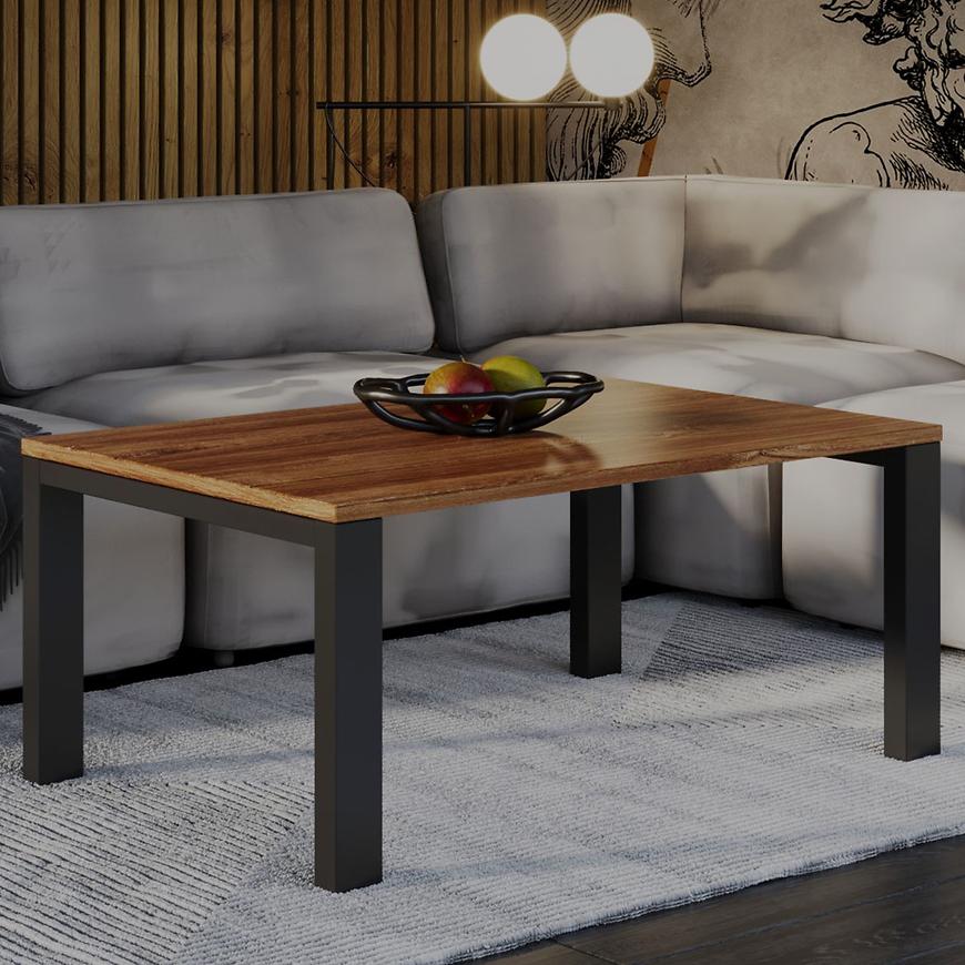 Blat wykonany z płyty wiórowej cechuje się trwałością oraz odpornością na uszkodzenia, dzięki czemu mebel ten doskonale sprawdzi się w salonach o wysokiej intensywności użytkowania. Jego stabilna konstrukcja opiera się na metalowym stelażu, co gwarantuje wytrzymałość i długowieczność ławy Garold, a jednocześnie wprowadza nowoczesny, industrialny akcent, będący doskonałym kontrastem dla minimalistycznego blatu. Dzięki wysokości 55 cm, ława doskonale komponuje się z sofami i fotelami, tworząc wygodny, komfortowy zestaw wypoczynkowy, który ułatwia codzienne korzystanie.
