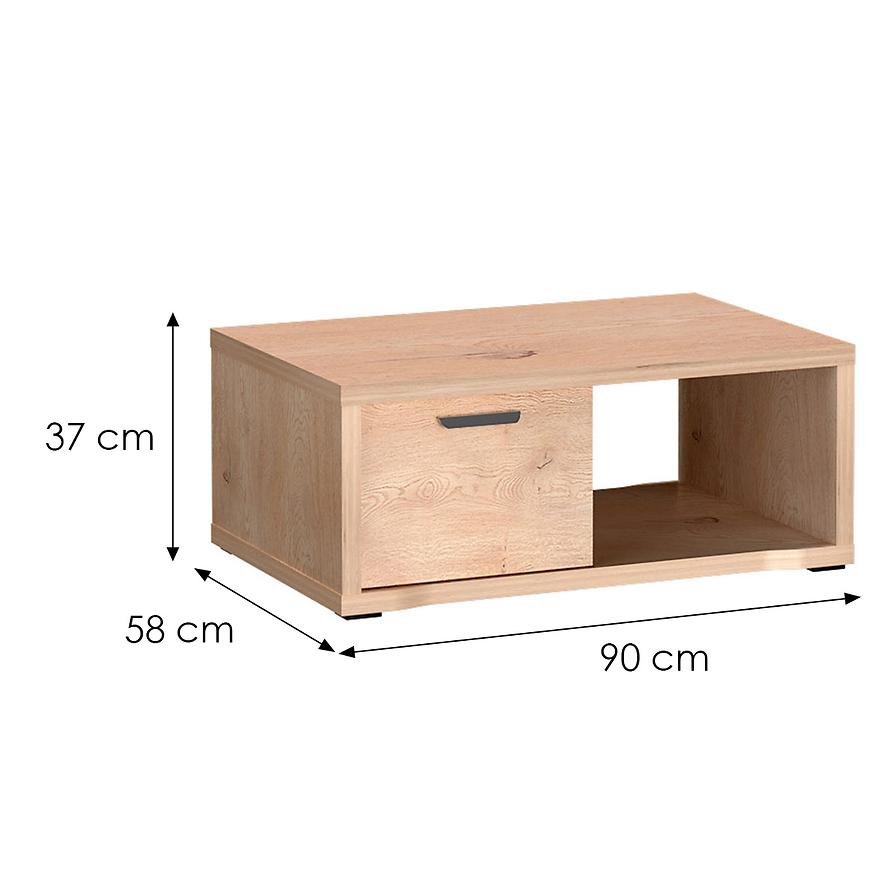 Prostokątny blat o długości 58 cm i szerokości 90 cm sprawdzi się idealnie jako miejsce na filiżankę kawy, książkę czy dekoracje. Ława nie posiada funkcji rozkładania ani regulacji wysokości, dzięki czemu zachowuje lekką formę i nowoczesny, minimalistyczny wygląd.