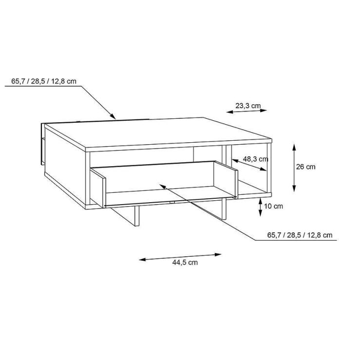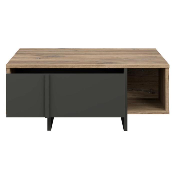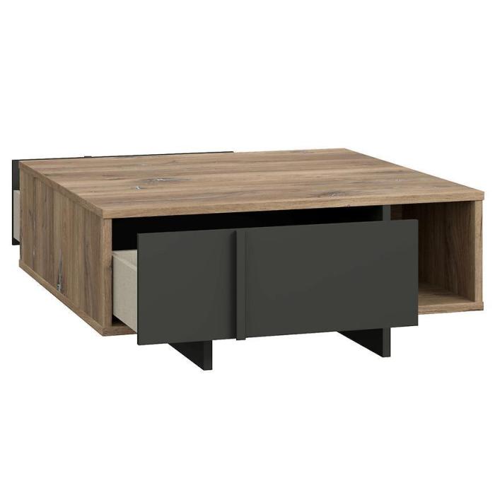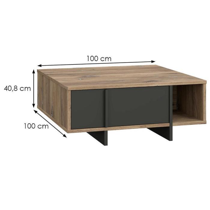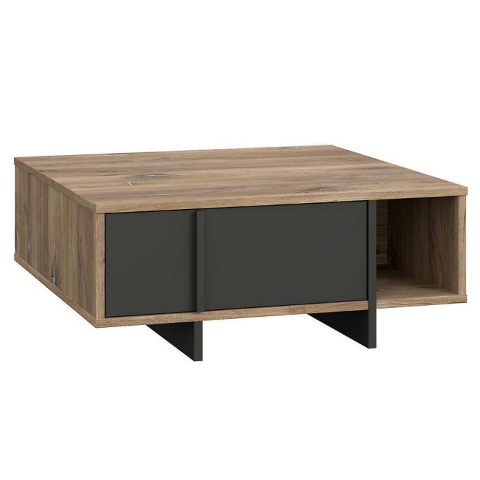 Stolik został wykonany z płyty wiórowej laminowanej w kolorze dąb flagstaff/czarny.