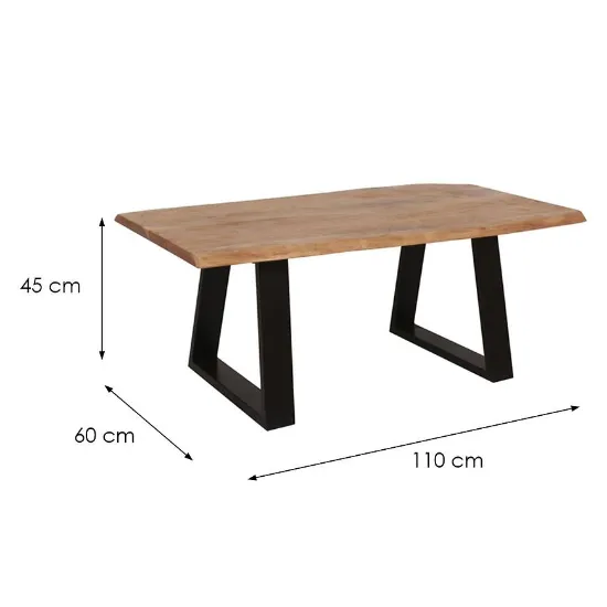 Blat wykonano z drewna z matowym wykończeniem, odpornego na codzienne użytkowanie i łatwego w czyszczeniu. Metalowy stelaż gwarantuje trwałość i stabilność mebla, a jego minimalistyczna forma sprawia, że ława wpasowuje się w różnorodne aranżacje wnętrz.