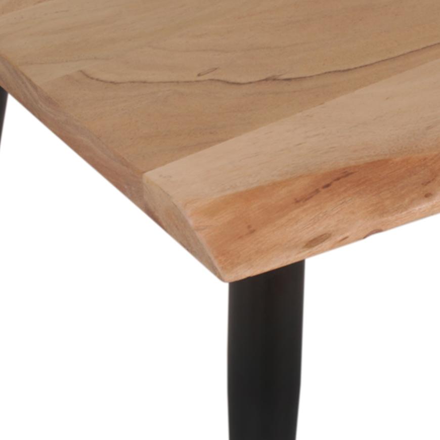 Blat wykonano z drewna z matowym wykończeniem, odpornego na codzienne użytkowanie i łatwego w czyszczeniu. Metalowy stelaż zapewnia trwałość i stabilność mebla, a jego minimalistyczna forma sprawia, że ława pasuje do różnych aranżacji wnętrz.