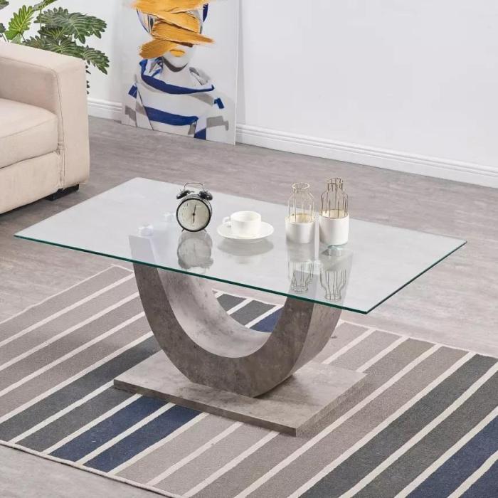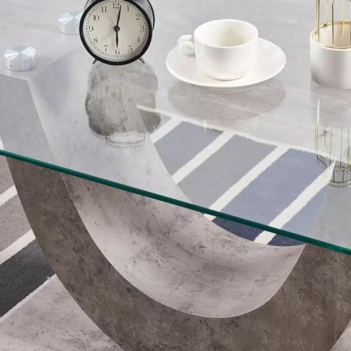 Ława IRON to mebel o awangardowej konstrukcji, który ucieszy wszystkich miłośników niecodziennych rozwiązań. Mebel posiada szarą podstawę w kształcie litery U oraz szykowny szklany blat. Ława ta będzie z pewnością nadzwyczajną ozdobą każdego salonu.