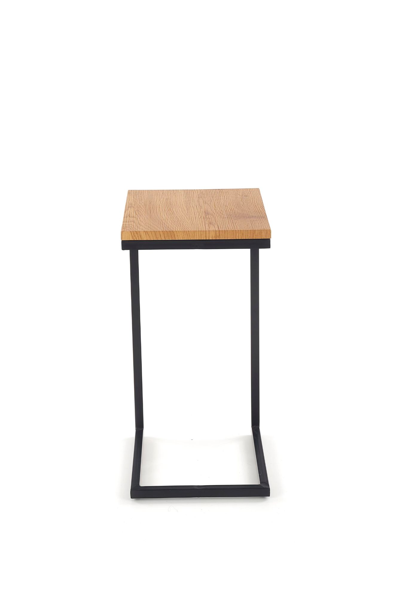 Blat wykonany jest z trwałego MDF-u laminowanego w eleganckim odcieniu dębu złotego, który nadaje wnętrzu ciepła i naturalności. Stelaż ze stali malowanej proszkowo na czarno gwarantuje stabilność i wytrzymałość, a jednocześnie podkreśla nowoczesny charakter mebla. Ława Kolos łączy w sobie prostotę z elegancją, pasując do wielu aranżacji wnętrz.