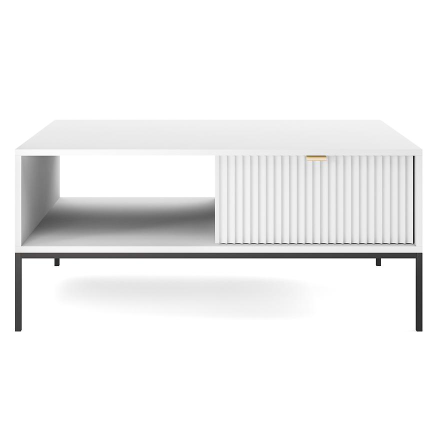Stolik Nova zachwyca swoją prostotą i elegancją. Kolor biały w połączeniu z matowym wykończeniem blatu tworzy minimalistyczną estetykę, która doskonale pasuje do różnych aranżacji wnętrz. Jego czyste linie i biała kolorystyka nadają pomieszczeniu świeżości i nowoczesnego wyglądu.
