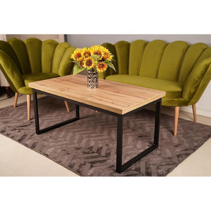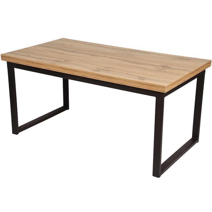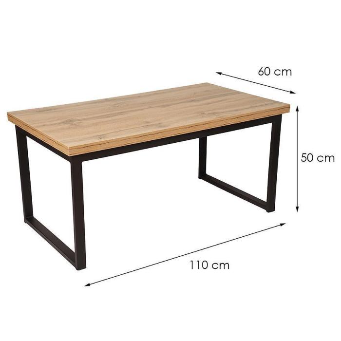 Stolik kawowy Emil w kolorze dąb wotan to przede wszystkim nowoczesność i funkcjonalność w jednym. Ława doskonale sprawdzi się w każdym salonie. Wygląd mebli jest loftowy, a zarazem uniwersalny. Ława została wykonana z płyty wiórowej laminowanej oraz metalowego stelaża.