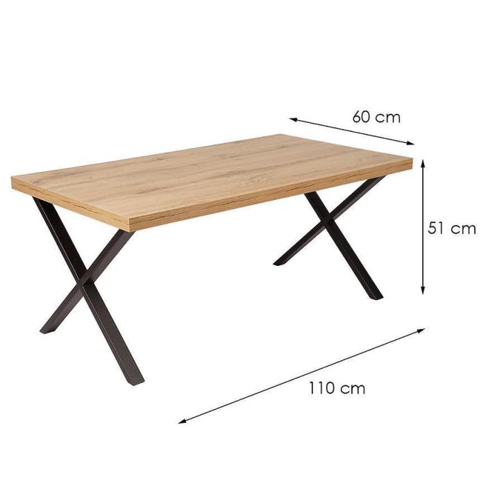 Stolik kawowy Irina w kolorze dąb wotan to przede wszystkim nowoczesność i funkcjonalność w jednym. Ława doskonale sprawdzi się w każdym salonie. Wygląd mebli jest loftowy, a zarazem uniwersalny. Ława została wykonana z płyty wiórowej laminowanej oraz metalowego stelaża.