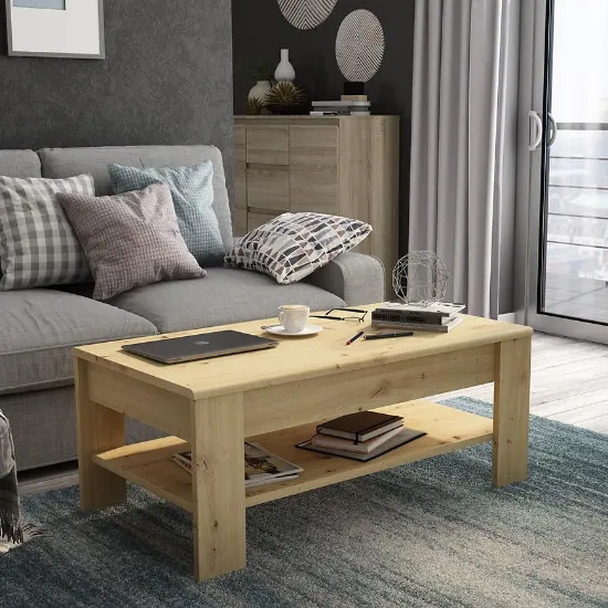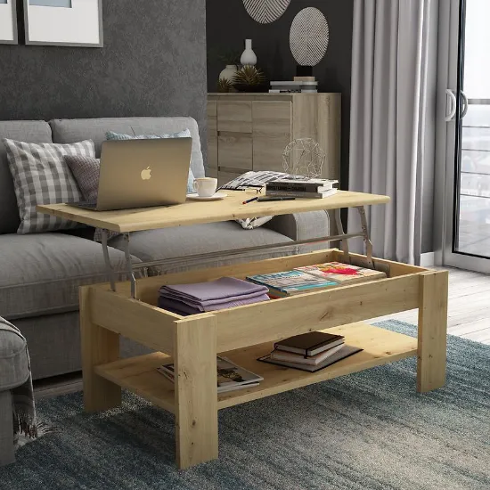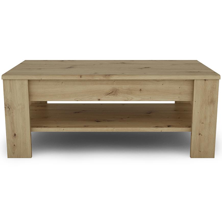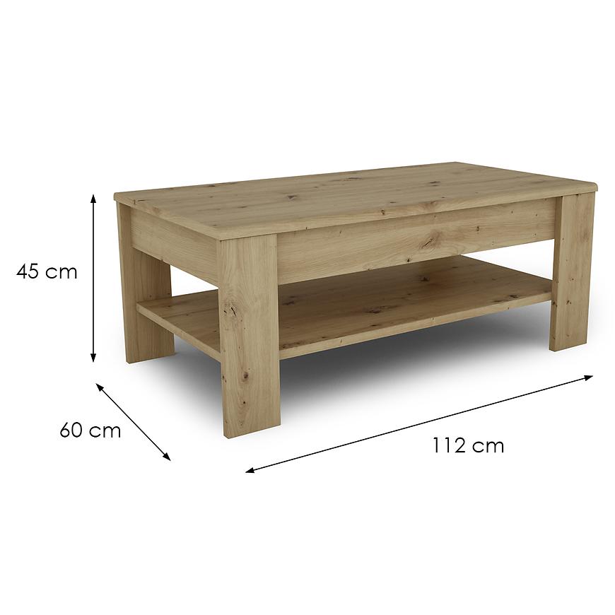 Jej prostokątny blat o matowym wykończeniu w kolorze artisan, wykonany z wysokiej jakości płyty wiórowej laminowanej, dodaje subtelnej elegancji każdemu pomieszczeniu. Dzięki możliwości rozkładania oraz regulacji wysokości blatu, ława Laila zapewnia wygodę i wszechstronność w użytkowaniu. Wysokość ławy wynosi 45 cm, a po rozłożeniu osiąga 66,6 cm, co sprawia, że idealnie pasuje zarówno do codziennego użytku, jak i okazjonalnych spotkań. Z jej pomocą stworzysz przestrzeń, która łączy estetykę z funkcjonalnością.