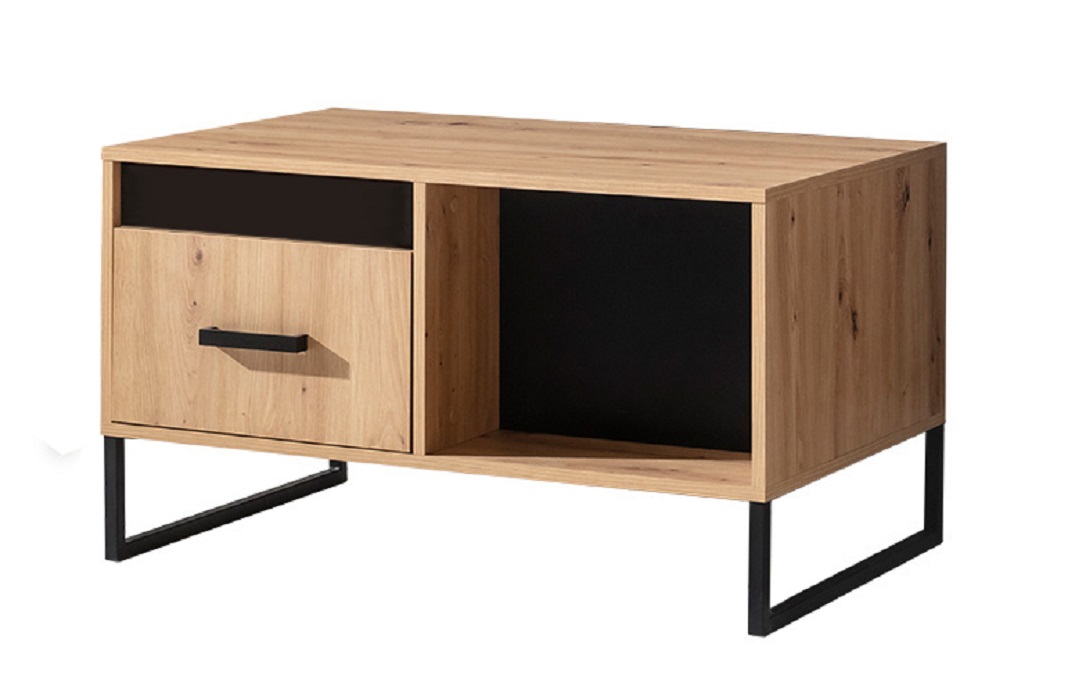 Pod blatem ławy znajdują się dwie obszerne wnęki oraz dwie wygodne szuflady, które umożliwiają przechowywanie różnych przedmiotów, takich jak książki, czasopisma, zdobione przedmioty czy inne drobiazgi. Dzięki temu masz pewność, że Twoje rzeczy będą zawsze w porządku i łatwo dostępne.