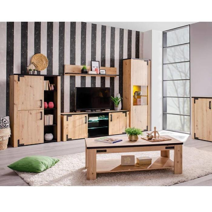 Doskonale sprawdzi się w salonie lub innym, dowolnym pomieszczeniu. Wykonana jest w całości z płyty wiórowej laminowanej.