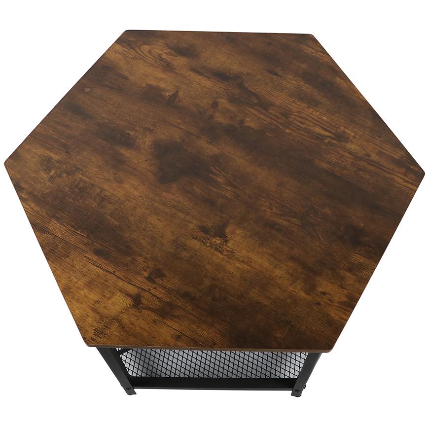 Stelaż stolika z metalu nadaje mu solidności i stabilności, a jednocześnie wprowadza industrialny akcent, typowy dla loftowego stylu. Połączenie materiałów sprawia, że nie tylko prezentuje się nowocześnie, ale również jest praktyczny i funkcjonalny.