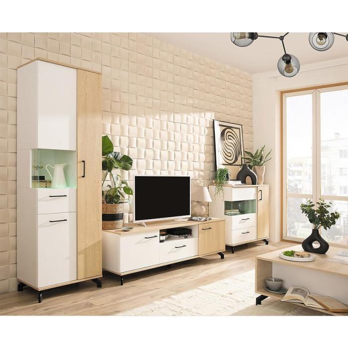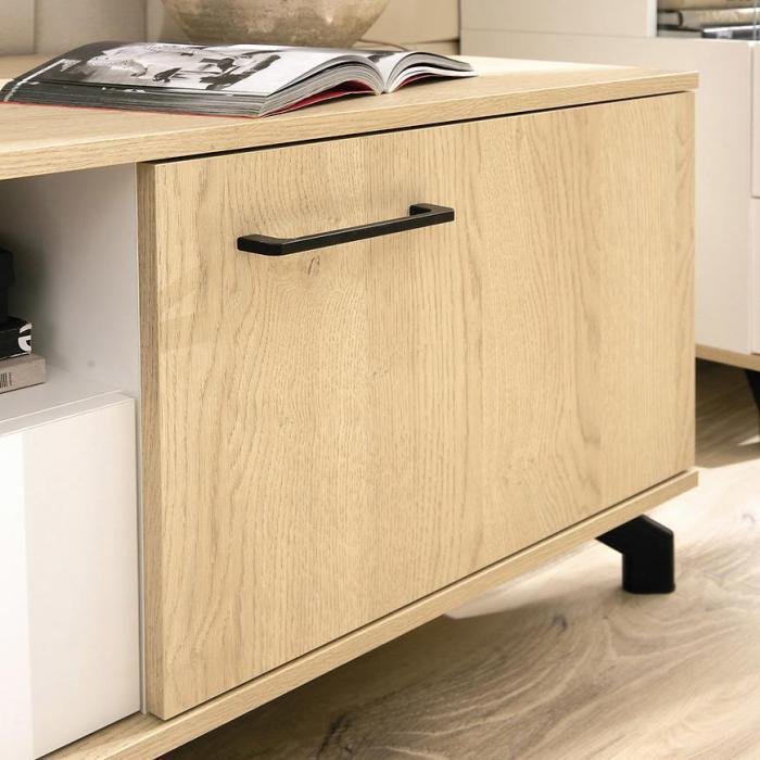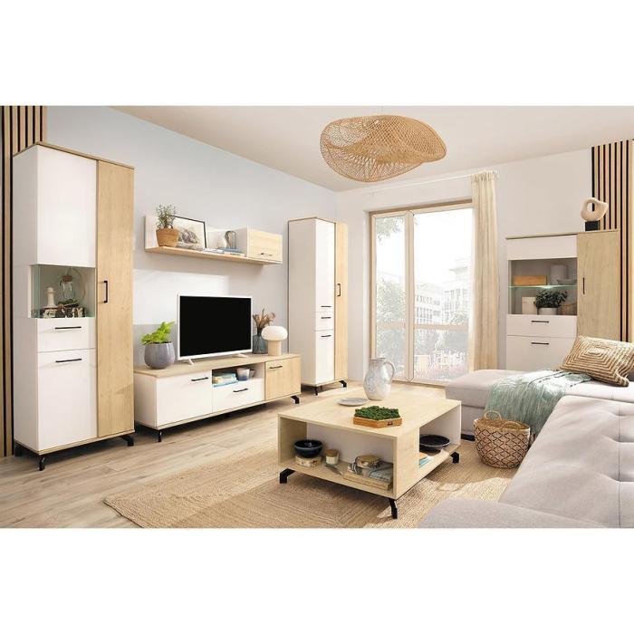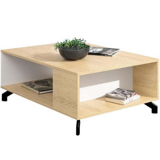 Ława Madison MD14 biały lux/dąb biszkoptowy idealnie wpasuje się w aranżacje, nadając przy tym nowoczesny design. Wymiary stolika zapewnią odpowiednią ilość miejsca do przechowywania. Ława posiada półkę pod blatem, która jest idealnym miejscem na książki, bądź inne drobiazgi.