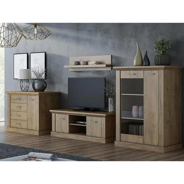 Meble Antica wykonane z wysokiej jakości płyty wiórowej laminowanej, co gwarantuje trwałość i odporność na codzienne użytkowanie. Dekor dąb złoty kraft nadaje meblom naturalnego uroku, dodając wnętrzu ciepła i charakteru. Fronty oraz korpusy w matowym wykończeniu tworzą spójny, stonowany wygląd, który pasuje do różnych rodzajów aranżacji.