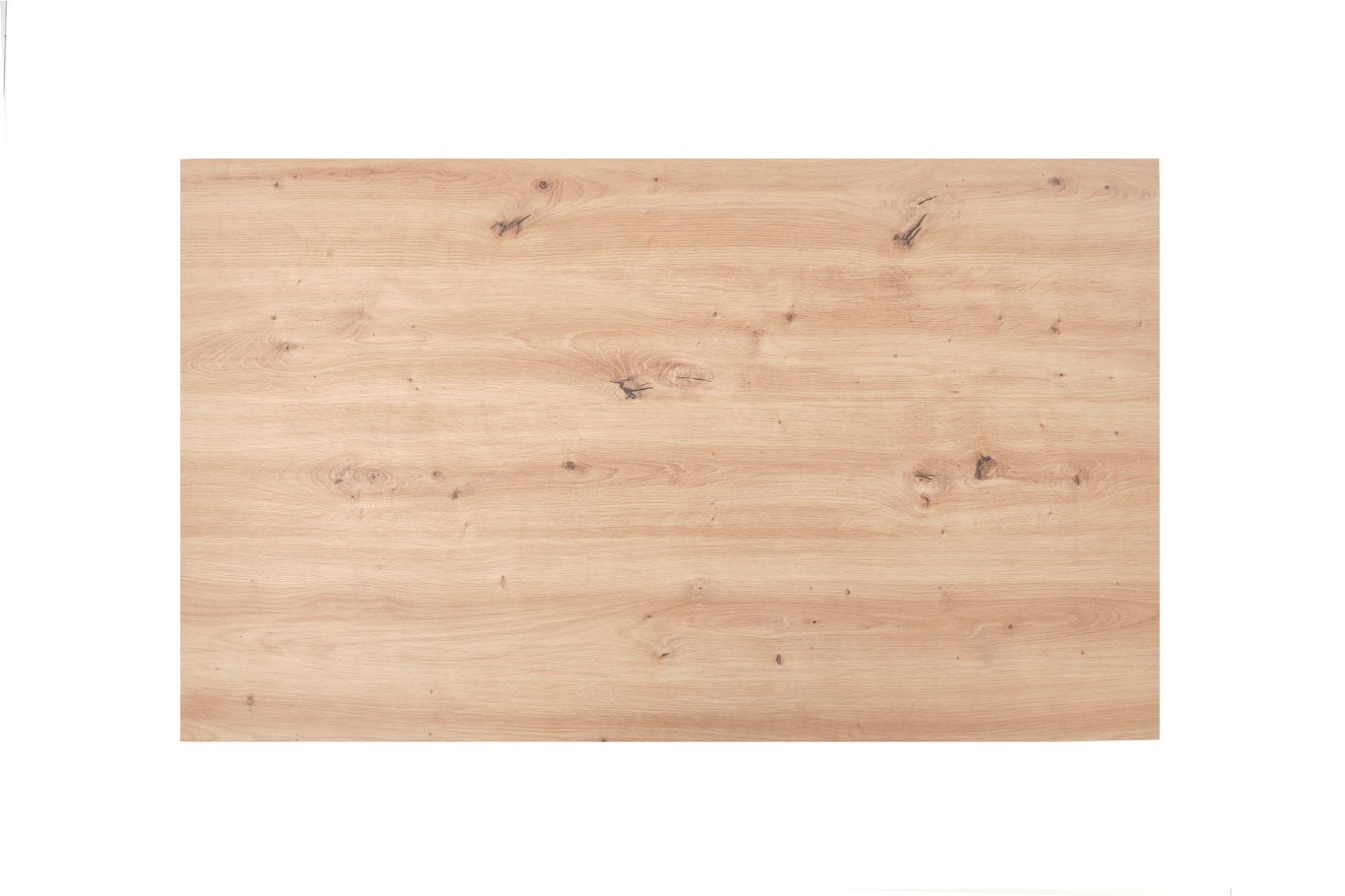 Centralnym elementem ławy jest szeroki, laminowany blat w kolorze dąb artisan, który oferuje przestronną powierzchnię do codziennego użytku – idealną na kawę, książki czy dekoracje. Ciemne, kontrastujące z blatem nogi dodają całości wyrazistości i współczesnego charakteru.