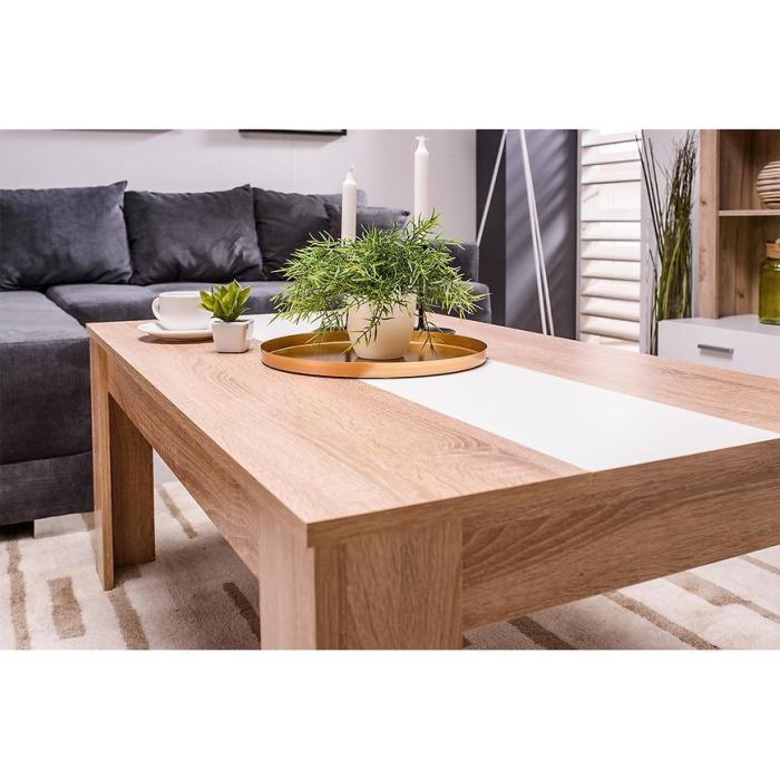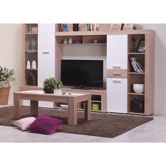 Doskonale sprawdzi się w salonie lub innym, dowolnym pomieszczeniu. Wykonana jest w całości z płyty wiórowej laminowanej.