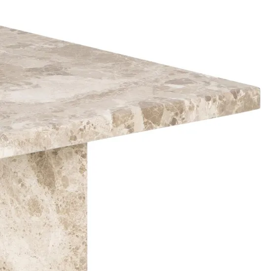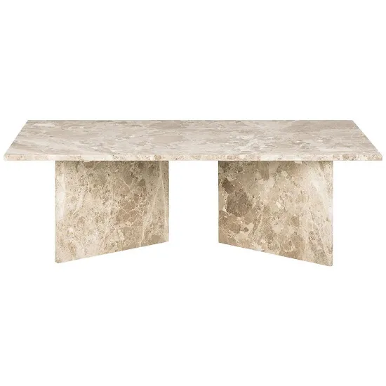 Wykonana w całości z marmuru, zachwyca matowym, prostokątnym blatem w eleganckim, białym wybarwieniu. Solidny marmurowy stelaż zapewnia trwałość i stabilność, a minimalistyczna forma doskonale wpisuje się w styl nowoczesny. Doskonała jako centralny element salonu, doda przestrzeni wyrafinowanego stylu i funkcjonalności.