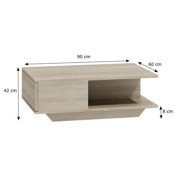 Ława Megan to bardzo nowoczesny i funkcjonalny mebel. Ława w kolorze dąb sonoma, sprosta oczekiwaniom wszystkich, którzy cenią połączenie minimalizmu i elegancji. Ława Megan w kolorze dąb sonoma doskonale się sprawdzi w salonach w stylu minimalistycznym oraz klasycznym. Mebel wykonany z płyty laminowanej 16 mm.