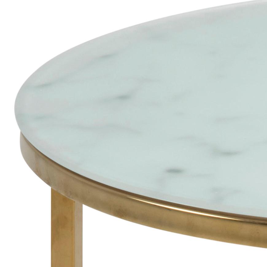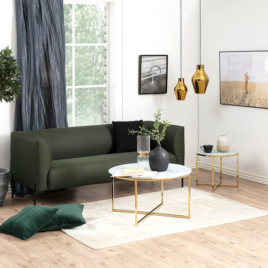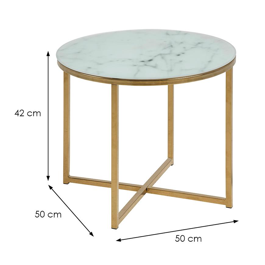 Okrągły kształt blatu sprawia, że ława Mira Marmur staje się nie tylko praktycznym elementem wyposażenia, ale również designerskim dziełem sztuki, zdolnym podkreślić harmonię przestrzeni. Blat wykonany z wysokiej jakości szkła dodaje lekkości całej konstrukcji, tworząc efektowny kontrast z solidnym metalowym stelażem.